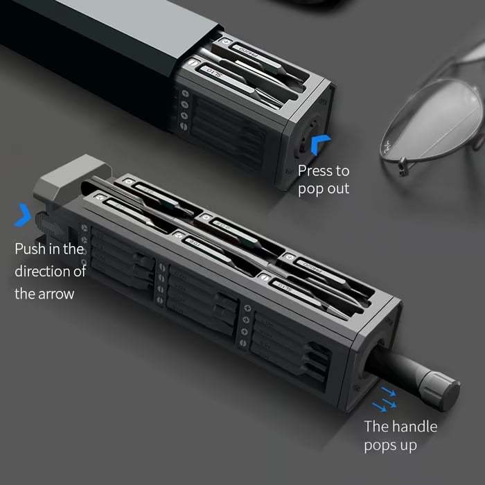 🧲 Magnetic Storage Case: Keep everything organized with the included magnetic case. It not only houses your screwdriver and bits but also features a pop-up mechanism that creates a satisfying experience when opening and closing the case.