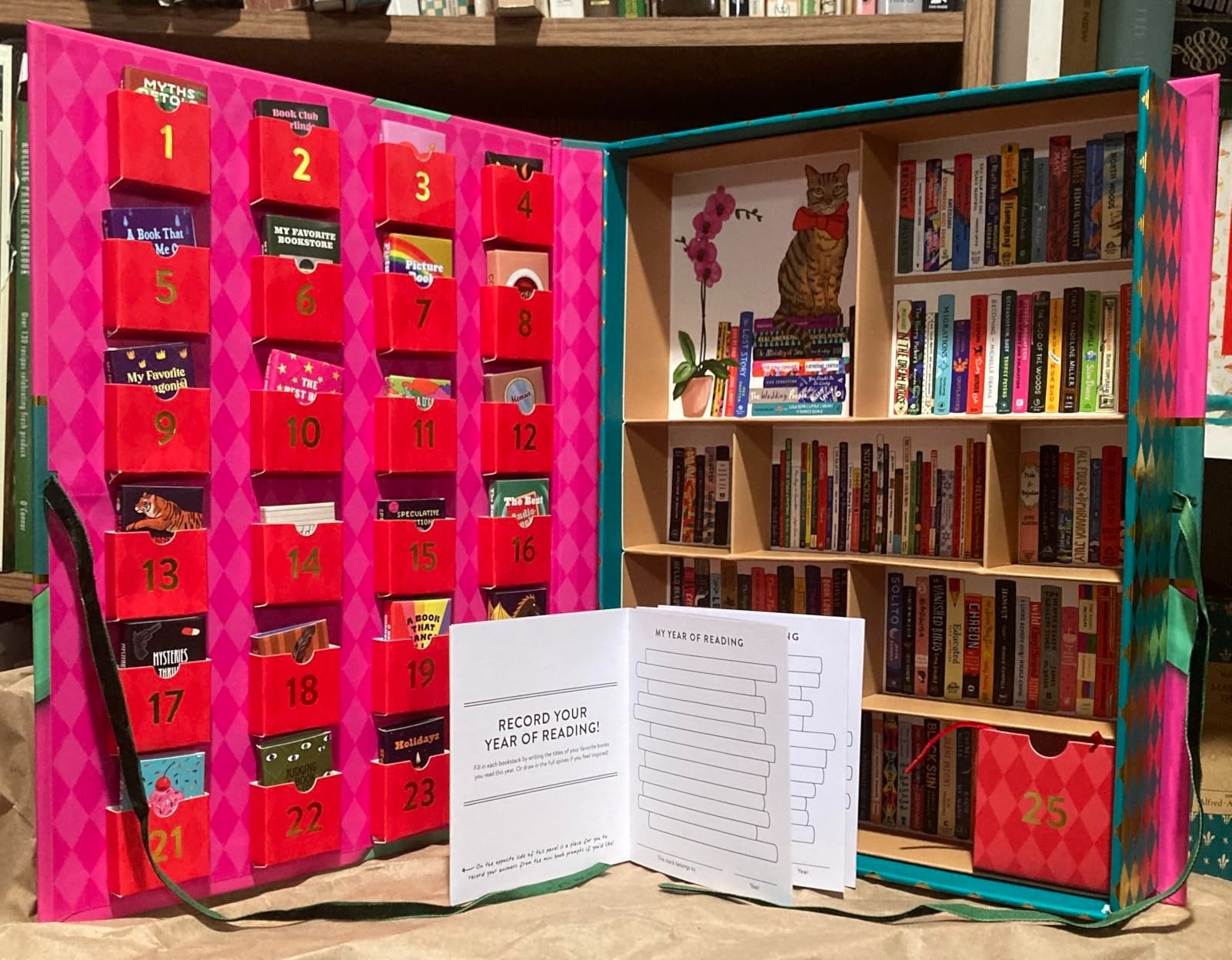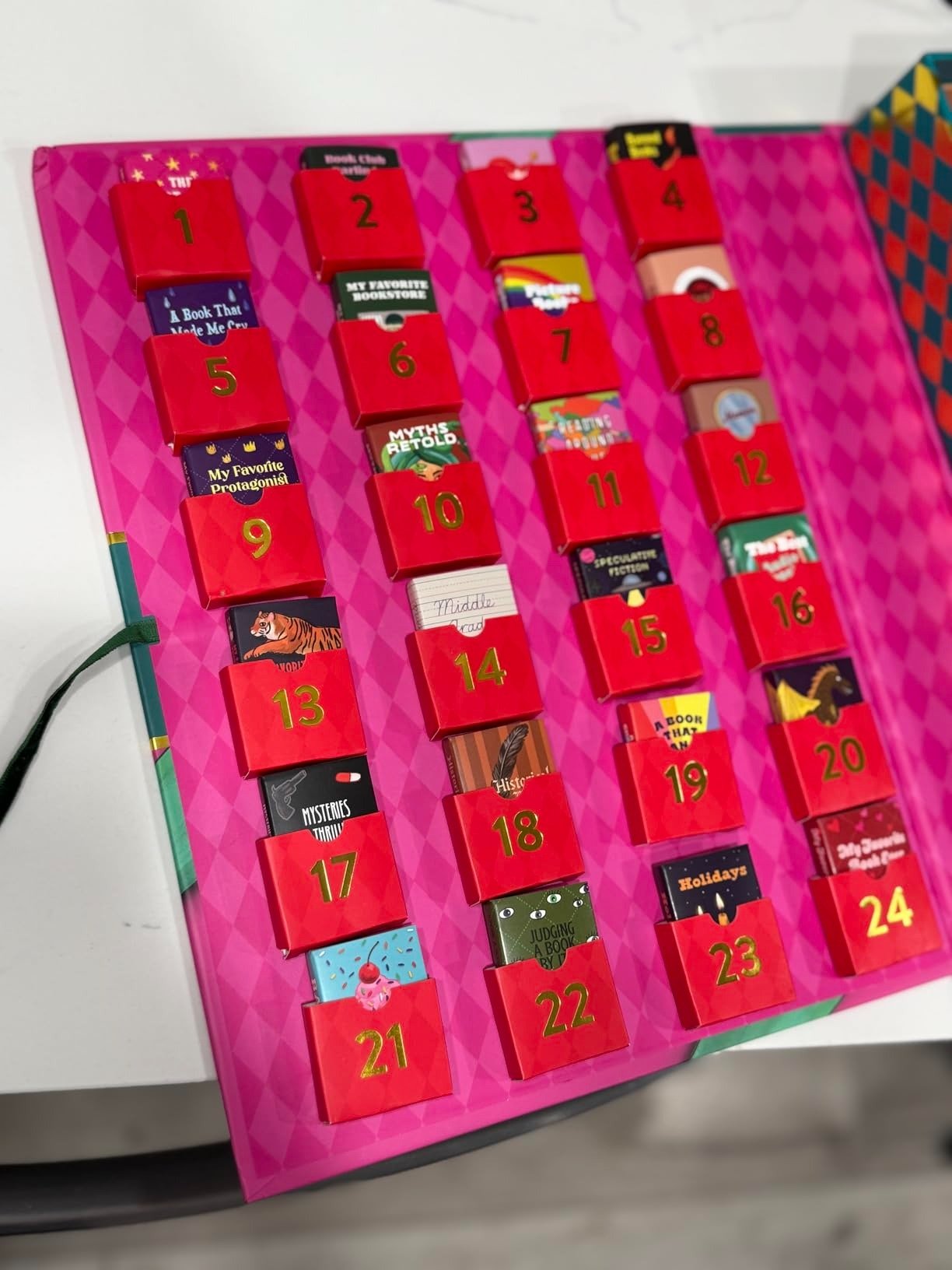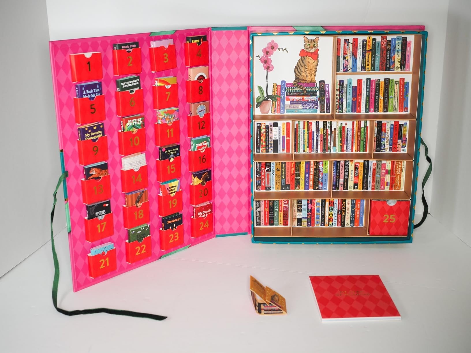 - 24 Miniature Books — Each tiny volume reveals daily prompts, book trivia, quotes, or delightful illustrations to spark your imagination.