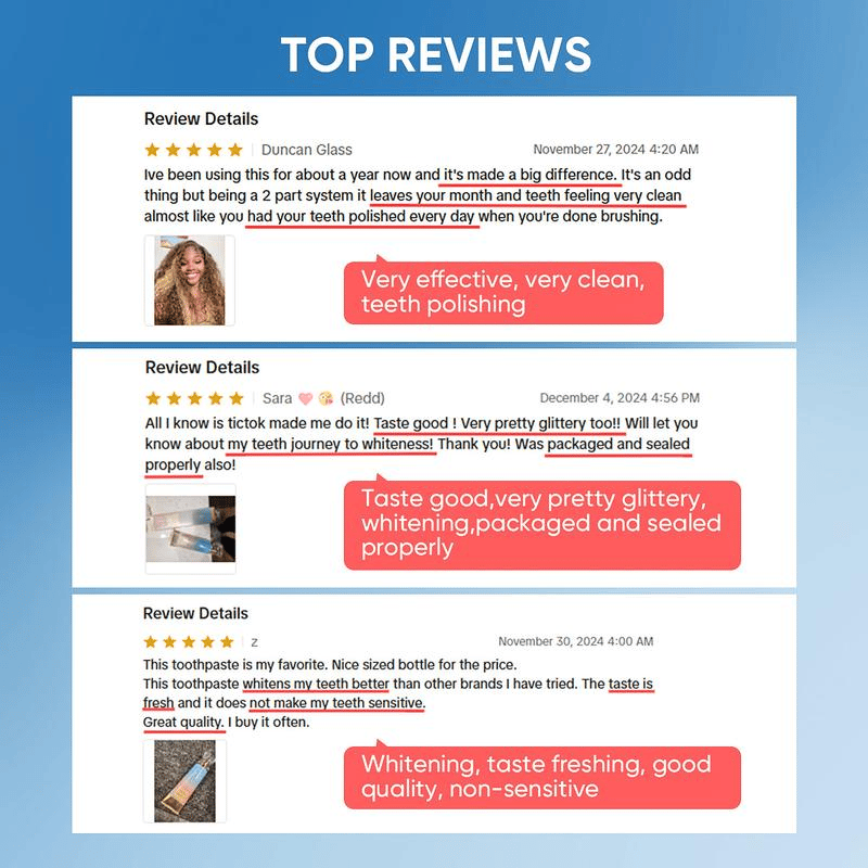 [TIME SAVER]: Simply brush your teeth with our toothpaste for 3 minutes, twice a day, for optimal results.