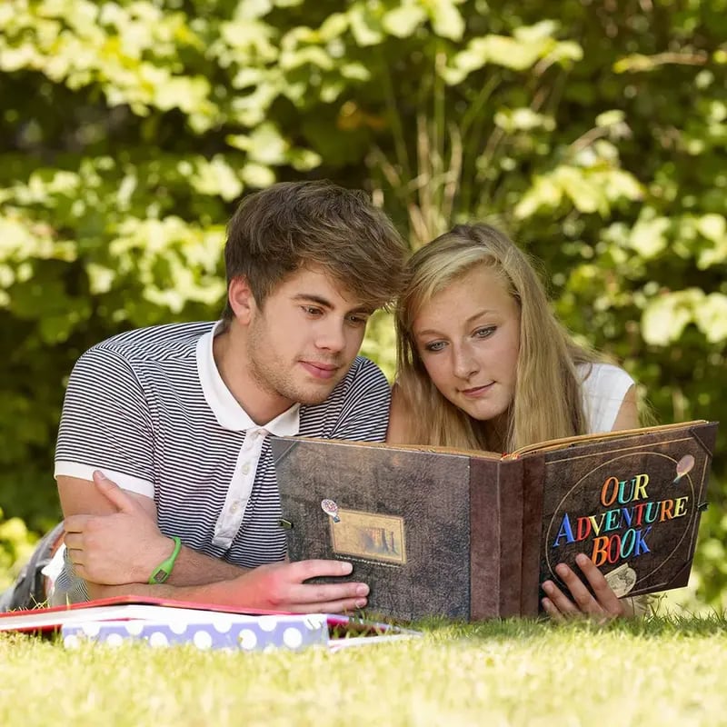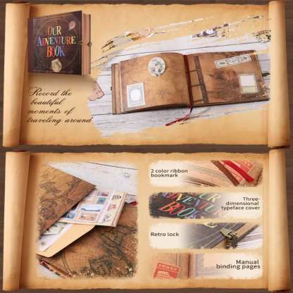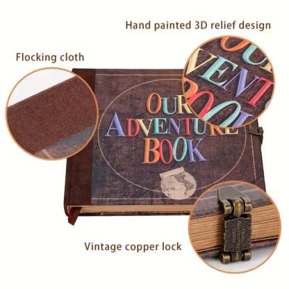 Vibrant Design: Our notebook diary features a lively, three-dimensional hardcover with colorful letters and leather patterns, setting it apart from ordinary adventure books. Digitally Enhand: Utilizing advand digital color printing technology, the leather cover is adorned with vivid balloon patterns, making "Our Adventure Book" and the design elements vivid and eye-catng.