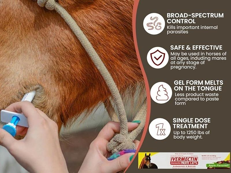 ivermectin Horse Paste 1.87% 6.08g Tubes-3packThis product is specifically designed for horses. ltcontains ivermectin at a concentration of 1.87% in each6.08g tube. The pack includes three tubes, ideal forregular use.