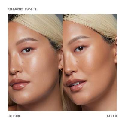 Natural, soft-matte, medium-buildable bronzed color that lasts.