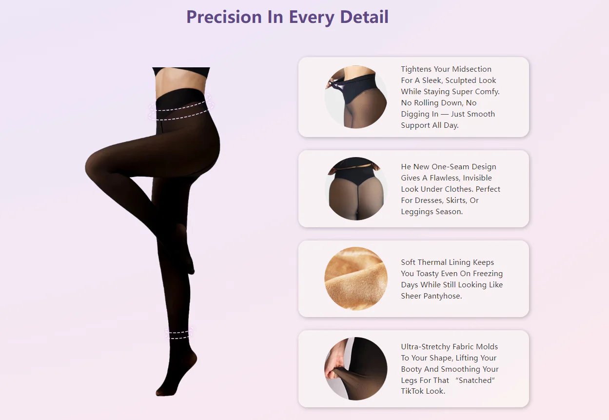 Fleece-Lined Warmth Without Bulk – Soft thermal lining keeps you toasty even on freezing days while still looking like sheer pantyhose.