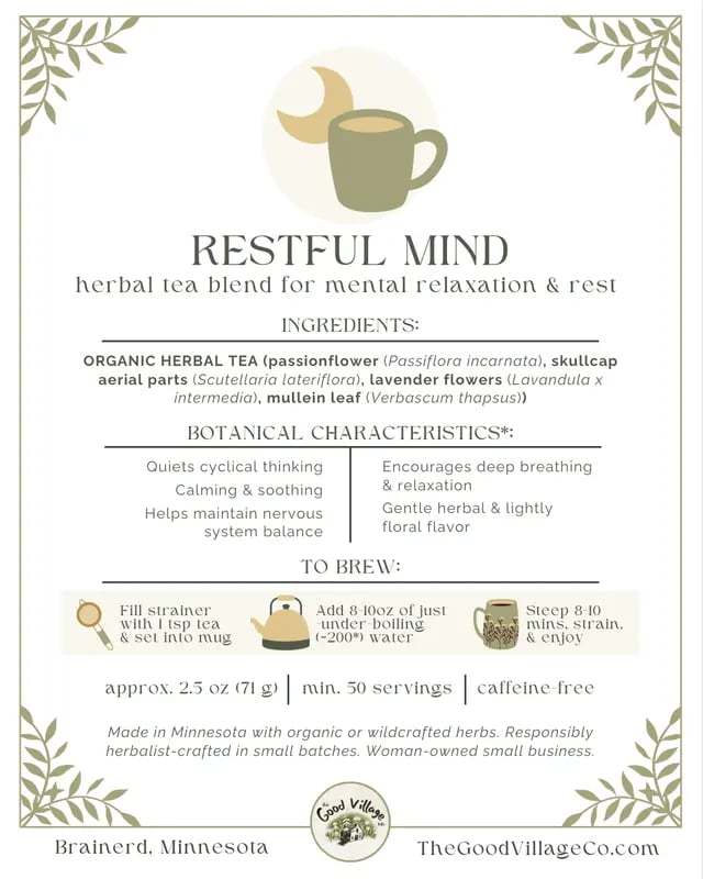 - Cinnamon: Warms the body and soothes the nervous system. - Ginger: Gently stimulates circulation and supports digestion.
